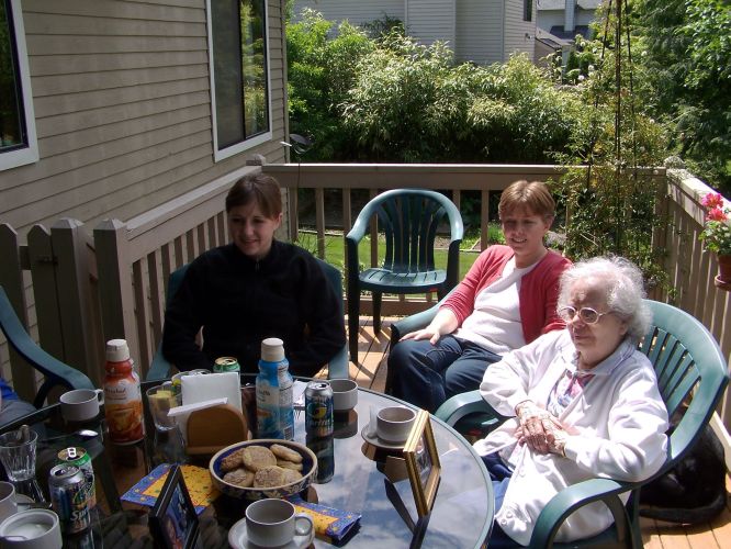 Pat's cousin Carol (Uncle Bill's daughter) has lived in Washington since she married Bryan. They have two daughters, Lauren and Michelle. We visited them at their beautiful home in Sammamish, and enjoyed lunch on their back patio-deck.