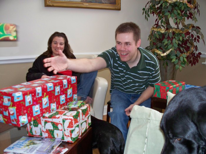 Notice the gift flying towards the upper left corner. Matt takes 'passing' gifts literally. Don't worry it was well received!